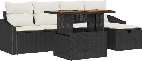 vidaXL 6-częściowy zestaw sof ogrodowych z poduszkami - Czarny Polirattan