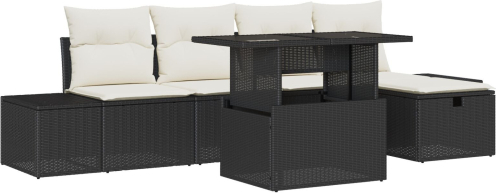 vidaXL 6-częściowy zestaw sof ogrodowych z poduszkami Czarny Polirattan