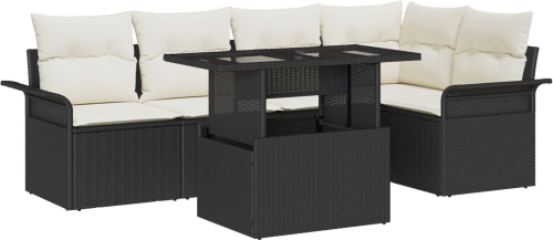 vidaXL 6-częściowy zestaw sof ogrodowych z poduszkami czarny polirattan