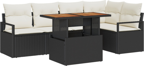 vidaXL 6-częściowy zestaw sof ogrodowych z poduszkami czarny rattan akacja