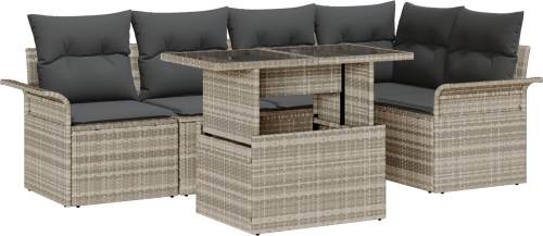 vidaXL 6-częściowy zestaw sof ogrodowych z poduszkami jasnoszary polirattan