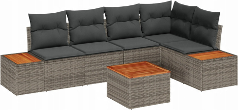 vidaXL 6-częściowy zestaw sof ogrodowych z poduszkami Szary Polirattan Akacja