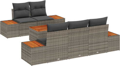 vidaXL 6-częściowy Zestaw Sof Ogrodowych z Poduszkami Szary Polirattan Akacja