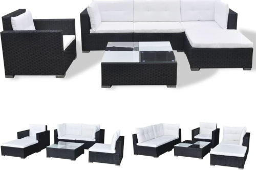 vidaXL 6-częściowy zestaw wypoczynkowy do ogrodu, poduszki, rattan PE czarny