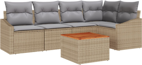 vidaXL 6-elementowy zestaw sof ogrodowych z poduszkami beżowy polirattan akacja