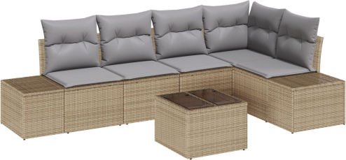 vidaXL 6-elementowy zestaw sof ogrodowych z poduszkami z czarnego polirattanu.
