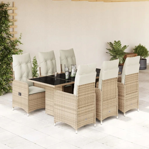 vidaXL 7-cz. zestaw mebli bistro z poduszkami, beżowy, polirattan