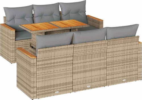 Vidaxl 7-cz. zestaw mebli z poduszkami, beżowy, polirattan i akacja