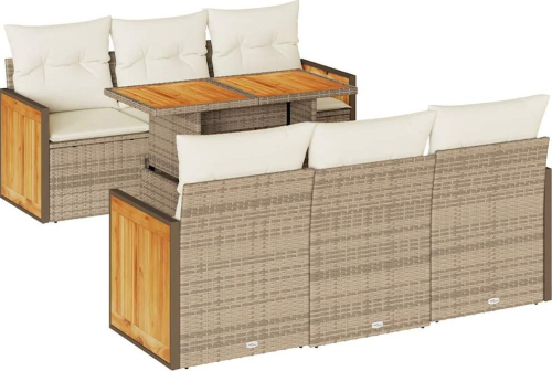 vidaXL 7-cz. zestaw mebli z poduszkami, beżowy, polirattan i akacja