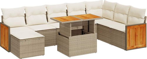 vidaXL 7-cz. zestaw mebli z poduszkami, beżowy, polirattan i akacja