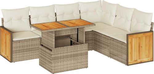 vidaXL 7-cz. zestaw mebli z poduszkami, beżowy, polirattan i akacja