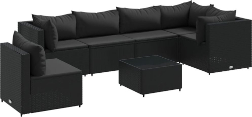 vidaXL 7-cz. zestaw wypoczynkowy do ogrodu, poduszki, czarny rattan PE