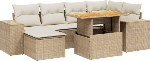 vidaXL 7-cz. zestaw wypoczynkowy do ogrodu, z poduszkami, beżowy