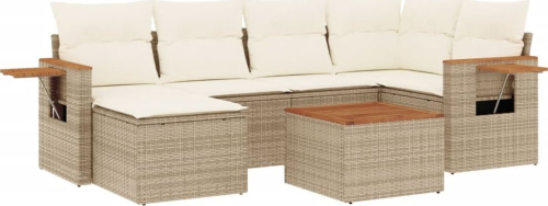 vidaXL 7-cz. zestaw wypoczynkowy do ogrodu, z poduszkami, beżowy