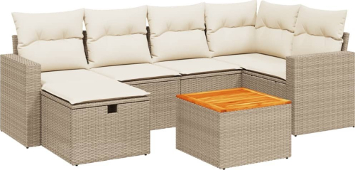 vidaXL 7-cz. zestaw wypoczynkowy do ogrodu, z poduszkami, beżowy