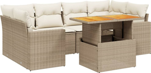 vidaXL 7-cz. zestaw wypoczynkowy do ogrodu, z poduszkami, beżowy