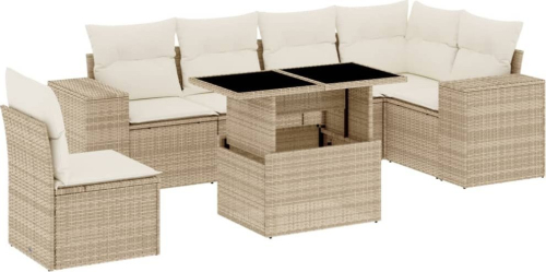vidaXL 7-cz. zestaw wypoczynkowy do ogrodu, z poduszkami, beżowy