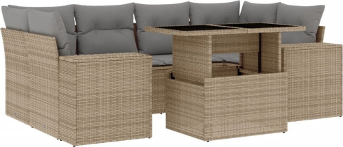 vidaXL 7-cz. zestaw wypoczynkowy do ogrodu, z poduszkami, beżowy