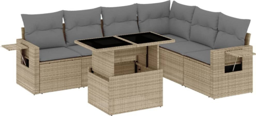 vidaXL 7-cz. zestaw wypoczynkowy do ogrodu, z poduszkami, beżowy