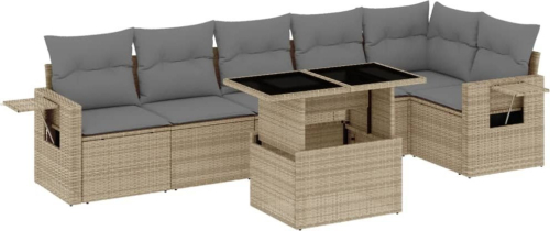 vidaXL 7-cz. zestaw wypoczynkowy do ogrodu, z poduszkami, beżowy