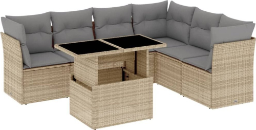 vidaXL 7-cz. zestaw wypoczynkowy do ogrodu, z poduszkami, beżowy