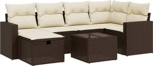vidaXL 7-cz. zestaw wypoczynkowy do ogrodu, z poduszkami, brązowy