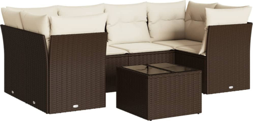 vidaXL 7-cz. zestaw wypoczynkowy do ogrodu, z poduszkami, brązowy