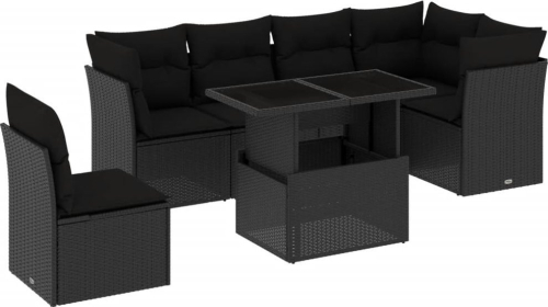 vidaXL 7-cz. zestaw wypoczynkowy do ogrodu, z poduszkami, czarny