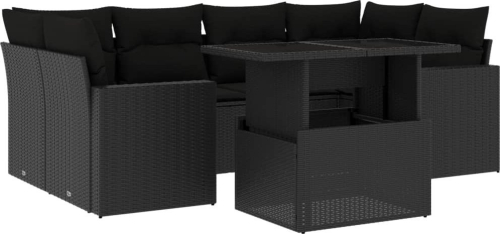vidaXL 7-cz. zestaw wypoczynkowy do ogrodu, z poduszkami, czarny