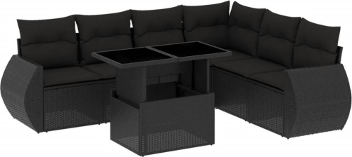 vidaXL 7-cz. zestaw wypoczynkowy do ogrodu, z poduszkami, czarny
