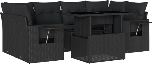 vidaXL 7-cz. zestaw wypoczynkowy do ogrodu, z poduszkami, czarny