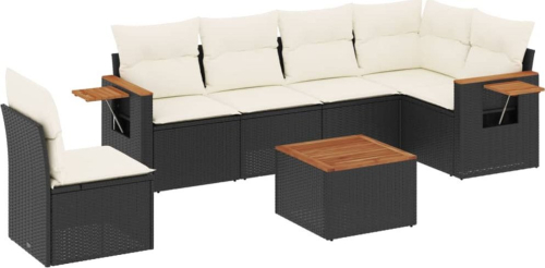 vidaXL 7-cz. zestaw wypoczynkowy do ogrodu, z poduszkami, czarny