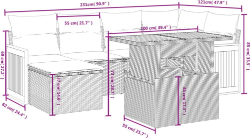 vidaXL 7-cz. zestaw wypoczynkowy do ogrodu, z poduszkami, czarny