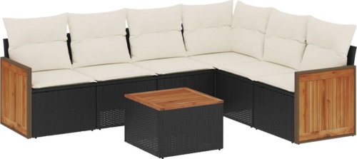 vidaXL 7-cz. zestaw wypoczynkowy do ogrodu, z poduszkami, czarny