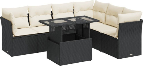 vidaXL 7-cz. zestaw wypoczynkowy do ogrodu, z poduszkami, czarny