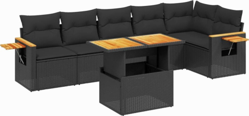 vidaXL 7-cz. zestaw wypoczynkowy do ogrodu, z poduszkami, czarny