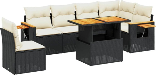 vidaXL 7-cz. zestaw wypoczynkowy do ogrodu, z poduszkami, czarny