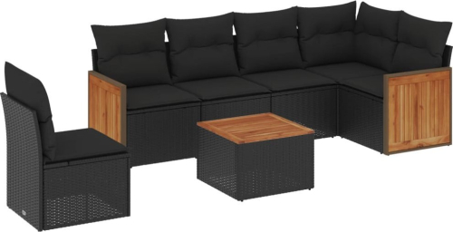 vidaXL 7-cz. zestaw wypoczynkowy do ogrodu, z poduszkami, czarny