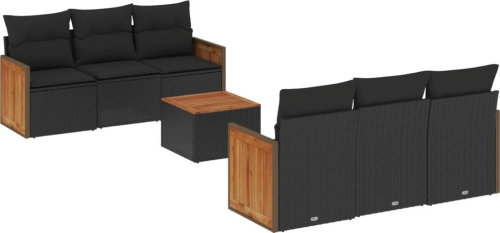 vidaXL 7-cz. zestaw wypoczynkowy do ogrodu, z poduszkami, czarny