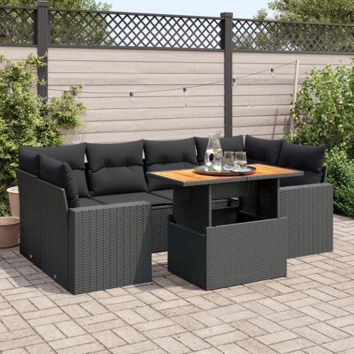 vidaXL 7-cz. zestaw wypoczynkowy do ogrodu, z poduszkami, czarny
