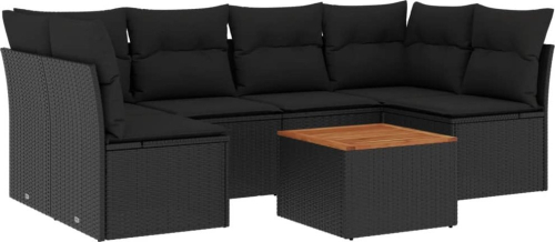 vidaXL 7-cz. zestaw wypoczynkowy do ogrodu, z poduszkami, czarny