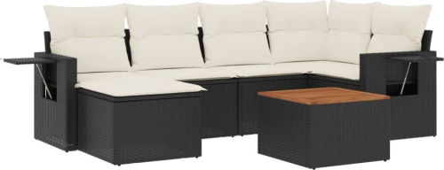 vidaXL 7-cz. zestaw wypoczynkowy do ogrodu, z poduszkami, czarny