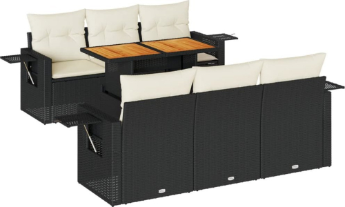 vidaXL 7-cz. zestaw wypoczynkowy do ogrodu, z poduszkami, czarny