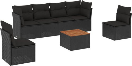 vidaXL 7-cz. zestaw wypoczynkowy do ogrodu, z poduszkami, czarny