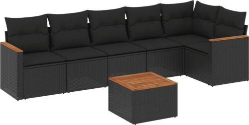 vidaXL 7-cz. zestaw wypoczynkowy do ogrodu, z poduszkami, czarny