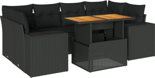 vidaXL 7-cz. zestaw wypoczynkowy do ogrodu, z poduszkami, czarny
