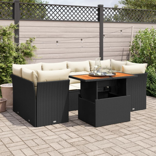 vidaXL 7-cz. zestaw wypoczynkowy do ogrodu, z poduszkami, czarny