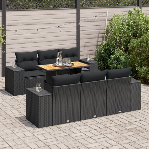 vidaXL 7-cz. zestaw wypoczynkowy do ogrodu, z poduszkami, czarny