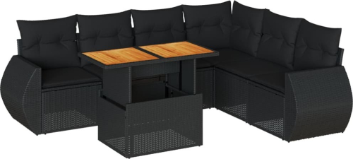 vidaXL 7-cz. zestaw wypoczynkowy do ogrodu, z poduszkami, czarny