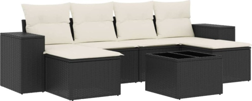 vidaXL 7-cz. zestaw wypoczynkowy do ogrodu, z poduszkami, czarny